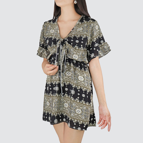 Vestido Juvenil con Moño Frontal color Verde con Negro