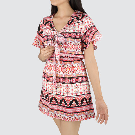 Vestido Juvenil con Moño Frontal color Rojo con Negro