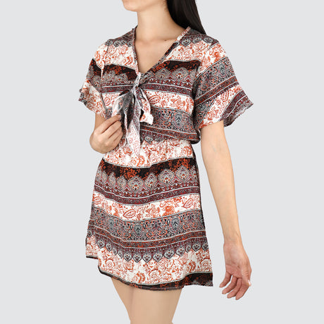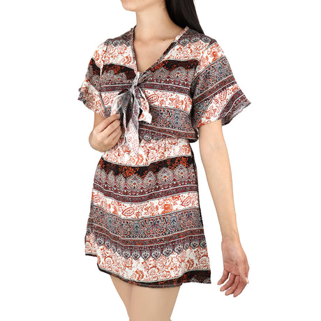 Overol Corto Casual con Diseño de Flores para Dama, color Beige