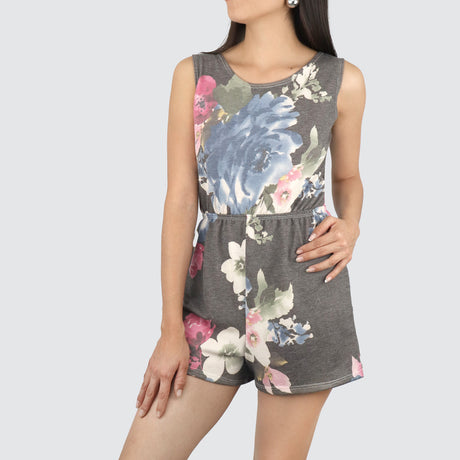 Overol Corto Casual con Diseño de Flores para Dama, color Gris