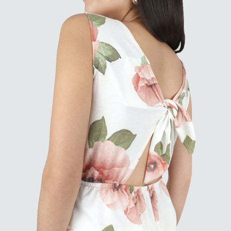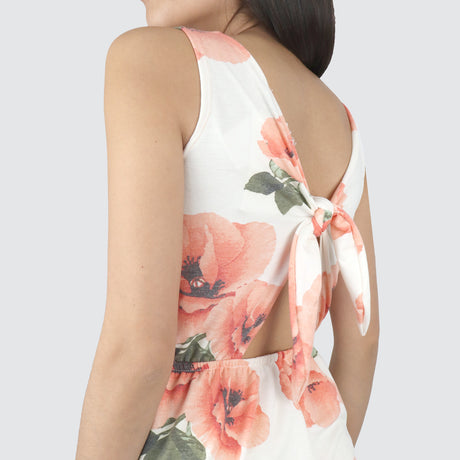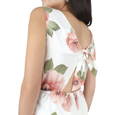 Overol Corto Casual con Diseño de Flores para Dama, color Crema