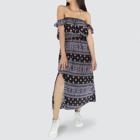 Vestido Casual con Abertura Frontal para Dama, color Negro con Azul