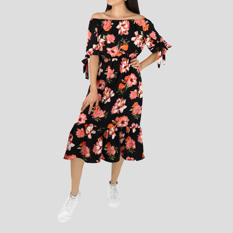 Vestido Casual con Diseño de Flores para Dama, color Negro con Naranja