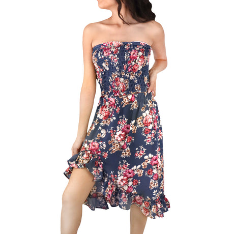 Vestido Casual con Hombros Descubiertos para Dama, color Azul Marino