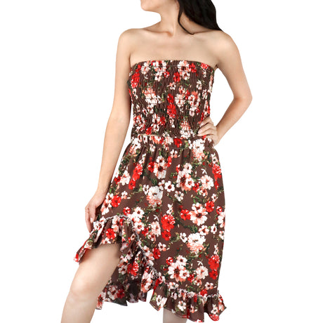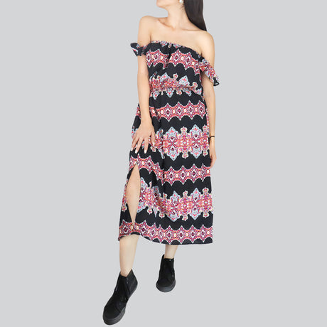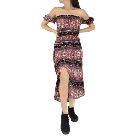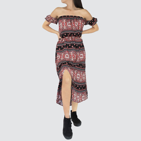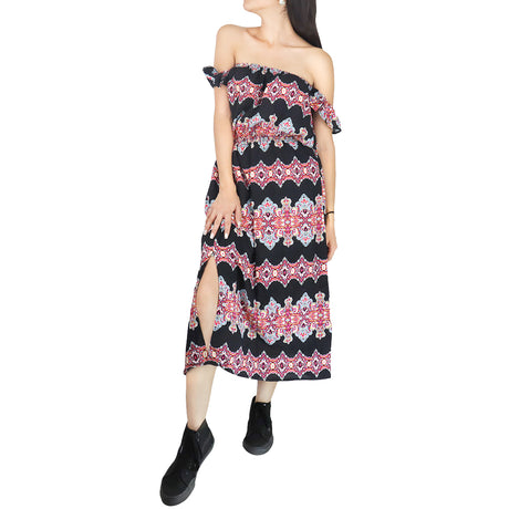 Vestido Casual con Hombros Descubiertos para Dama, color Negro con Rojo