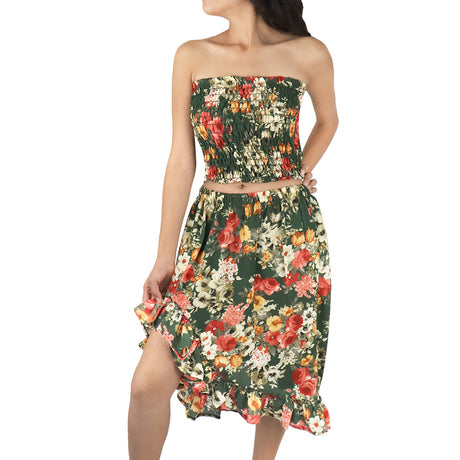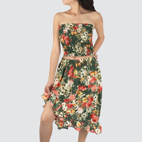 Conjunto de Top Corto Fruncido y Falda para Dama, color Verde Bandera