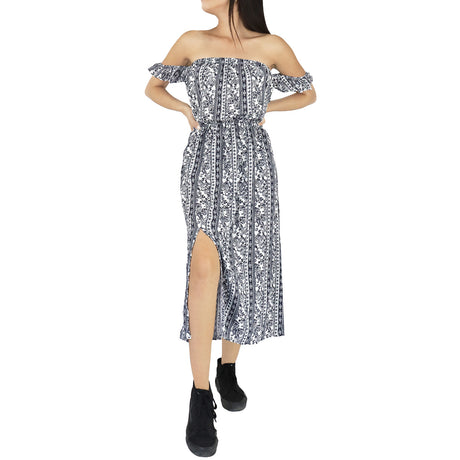Vestido Casual con Hombros Descubiertos para Dama, color Blanco