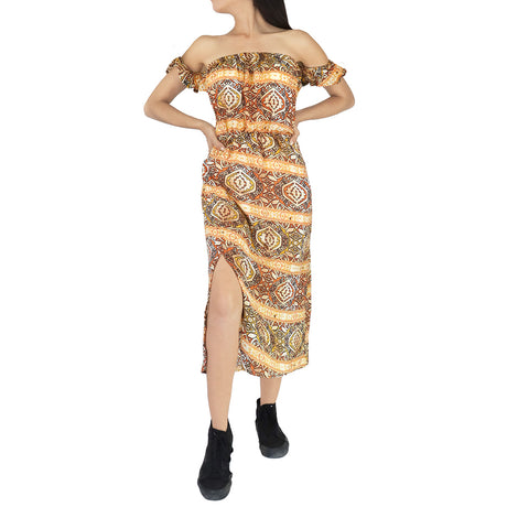 Vestido Casual con Hombros Descubiertos para Dama, color Amarillo con Naranja