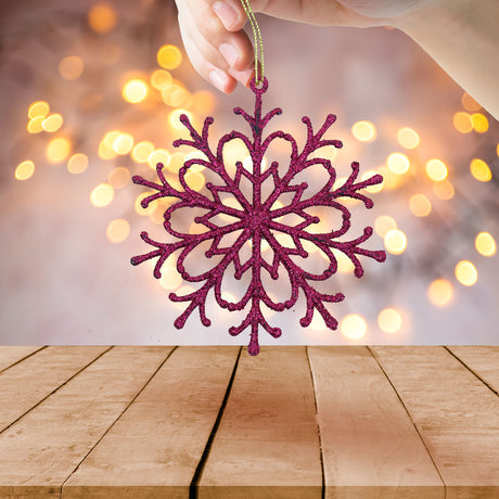 Ornamento Navideño en Forma de Copo de Nieve color Vino, 4pzas