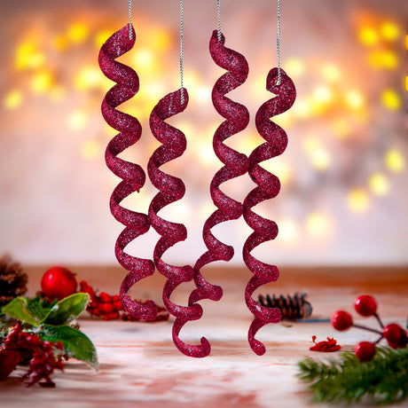 Set de 4 Ornamentos Navideños en Forma de Espiral color Fucsia