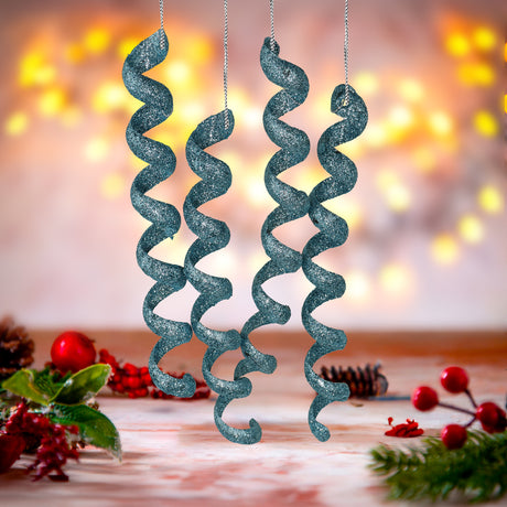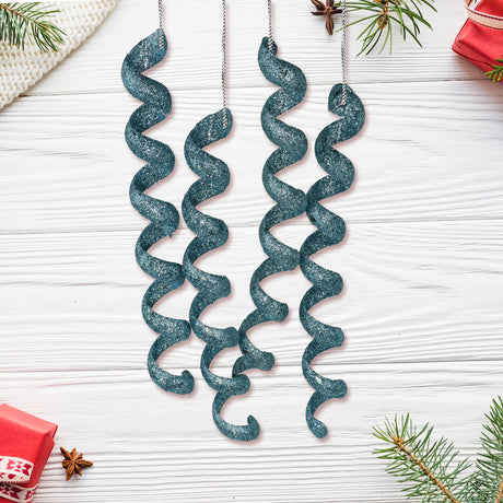 Set de 4 Ornamentos Navideños en Forma de Espiral color Azul