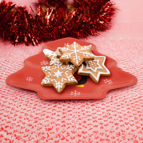 Charola de Plástico en Forma de Árbol Navideño color Rojo