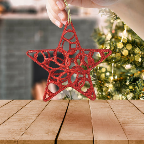 Ornamento Navideño en Forma de Copo de Nieve color Rojo