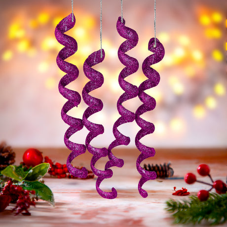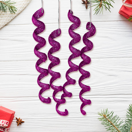 Set de 4 Ornamentos Navideños en Forma de Espiral color Morado