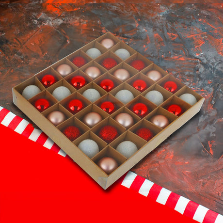 Set de 36 Esferas Navideñas color Rojo/Blanco/Oro