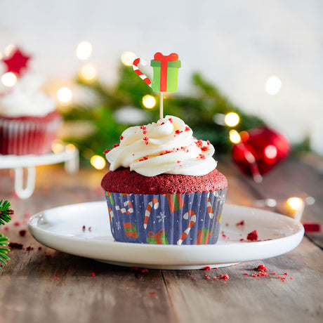 Set Navideño de Capacillos y Palillos Decorativos para Cupcakes