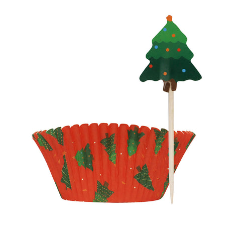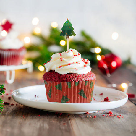 Set Navideño de Capacillos y Palillos Decorativos para Cupcakes, Pino