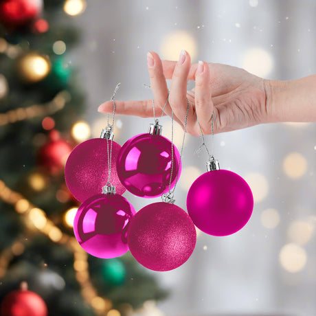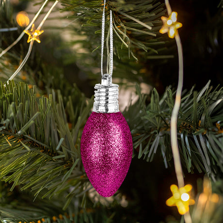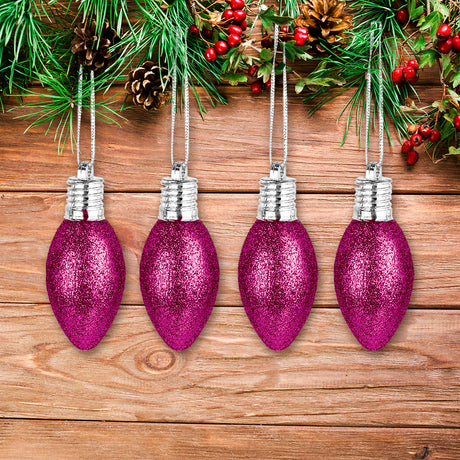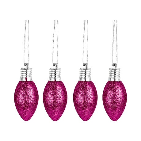 Set de 4 Ornamentos en Forma de Bombilla color Fucsia