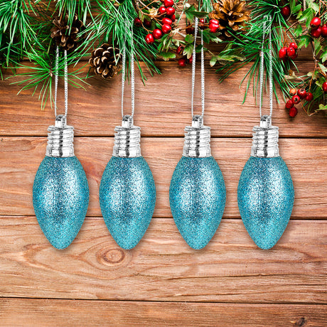 Set de 4 Ornamentos en Forma de Bombilla color Azul