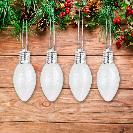 Set de 4 Ornamentos en Forma de Bombilla color Blanco