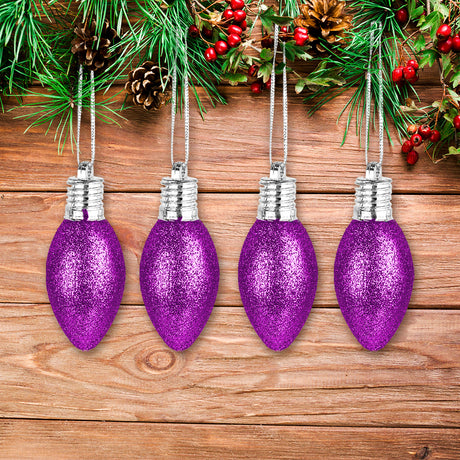 Set de 4 Ornamentos en Forma de Bombilla color Morado