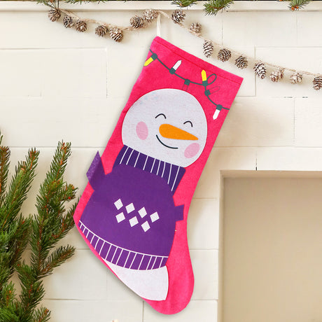 Bota Navideña color Fucsia, Muñeco de Nieve