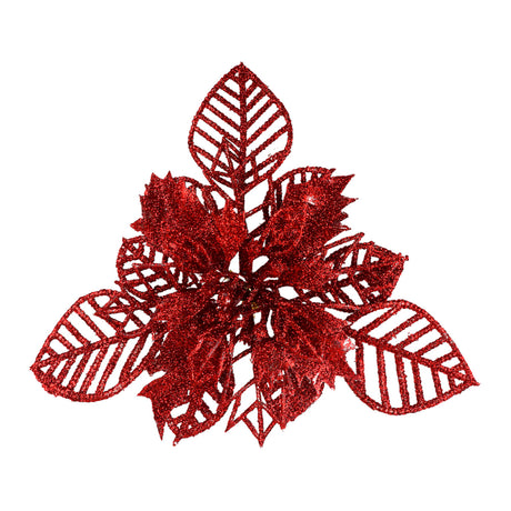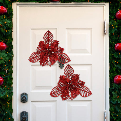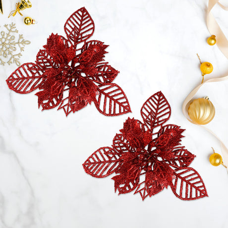 Set de 2 Nochebuenas Decorativas color Rojo con Diamantina