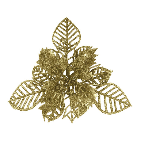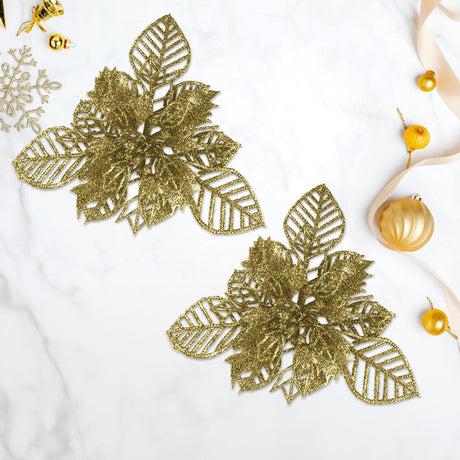 Set de 2 Nochebuenas Decorativas color Oro con Diamantina