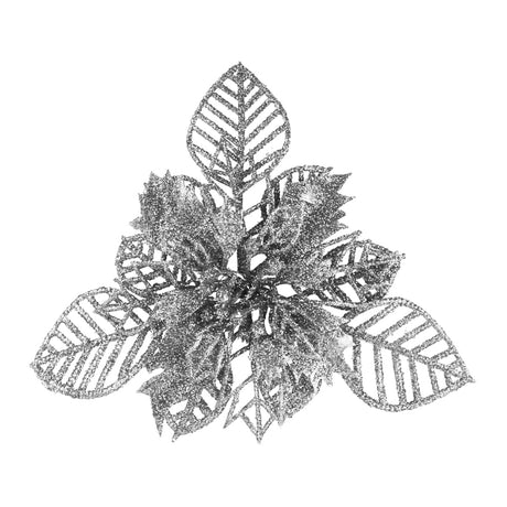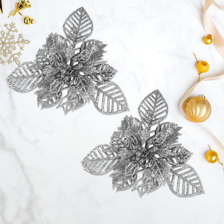 Set de 2 Nochebuenas Decorativas color Plata con Diamantina
