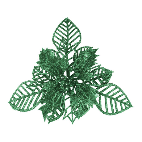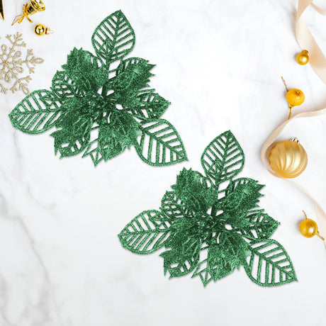 Set de 2 Nochebuenas Decorativas color Verde con Diamantina