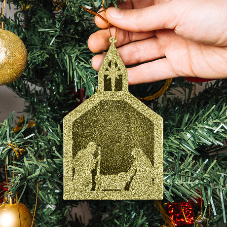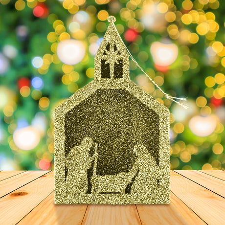 Ornamento Navideño en Forma de Nacimiento color Oro