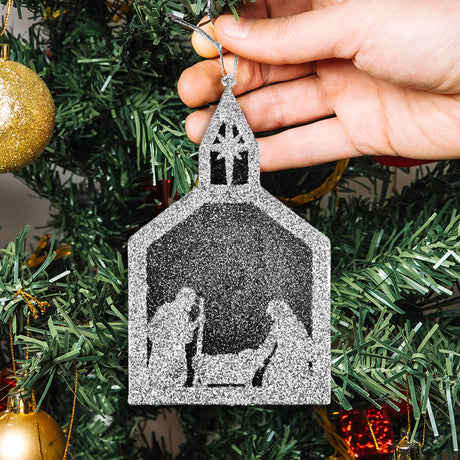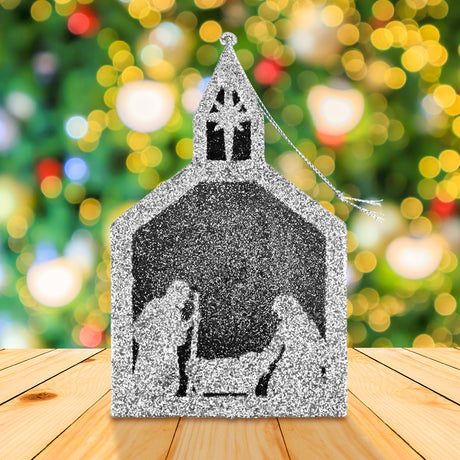 Ornamento Navideño en Forma de Nacimiento color Plata