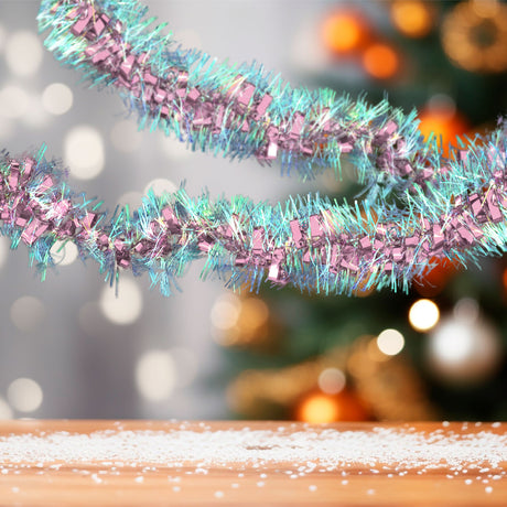 Guirnalda Navideña de Tinsel color Rosa con Tornasol