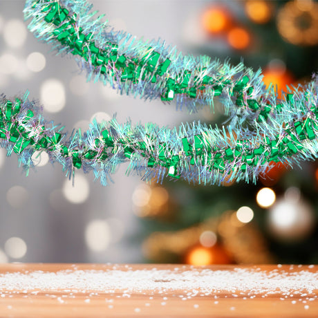 Guirnalda Navideña de Tinsel color Verde con Tornasol