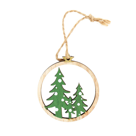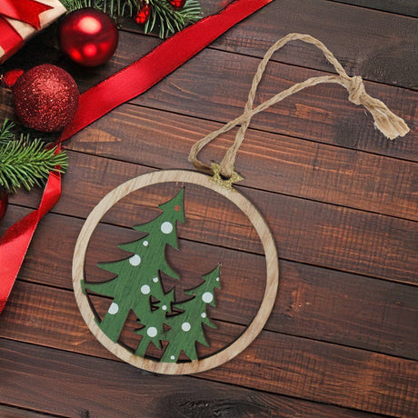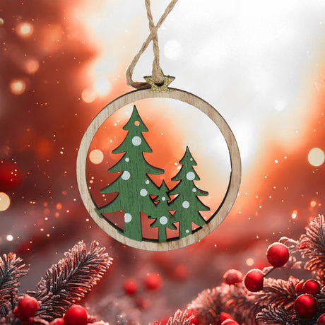 Esfera Navideña de MDF con Árboles en el Interior, 2pzas