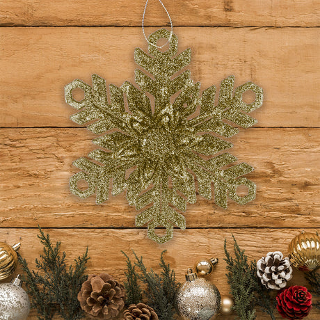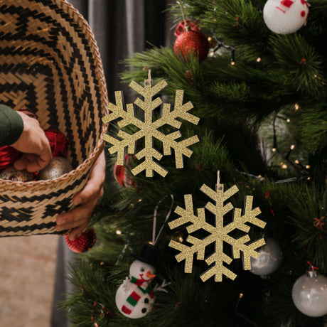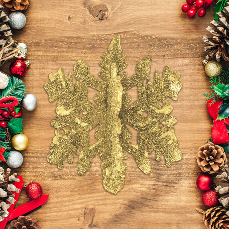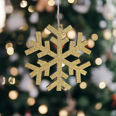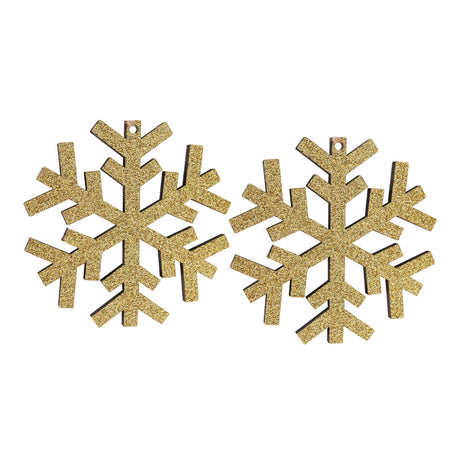 Set de 2 Copos de Nieve MDF con Diamantina color Oro