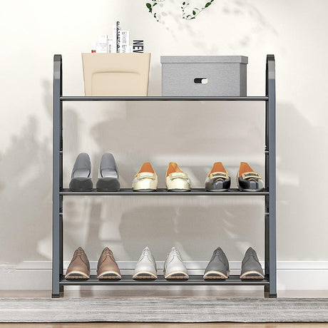 Inkanto, Zapatera de Metal Sólido de 3 Niveles, color Negro