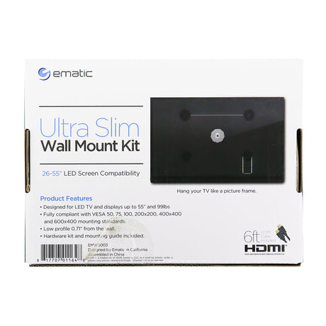 Kit de Montaje de Pared para Televisores de 26" a 55" con Cable HDMI, Ematic (EMW5003)