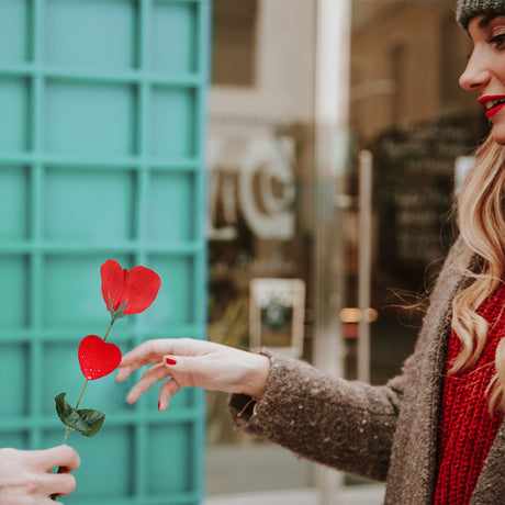 Bolsa Love de Corazones Rayada, Color Rojo/Blanco