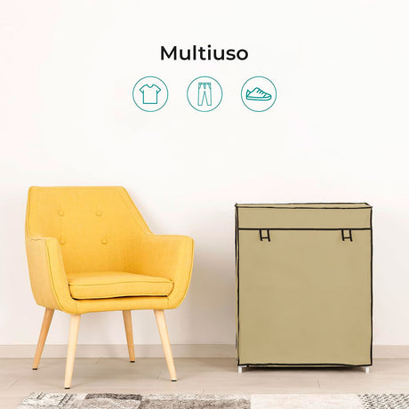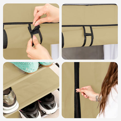 Zapatera con Cubierta de Tela, color Beige, 4 niveles