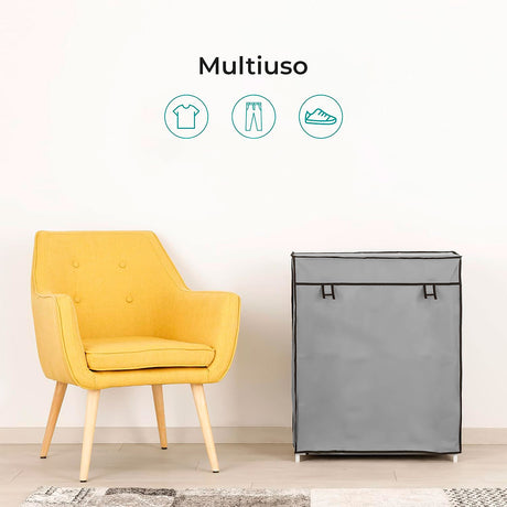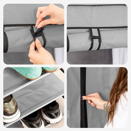 Zapatera con Cubierta de Tela, color Gris, 4 niveles