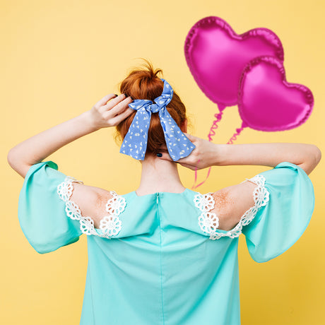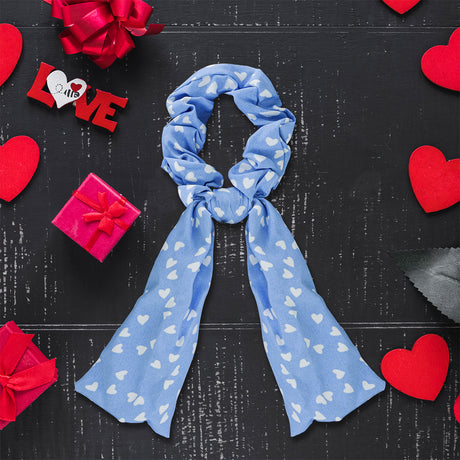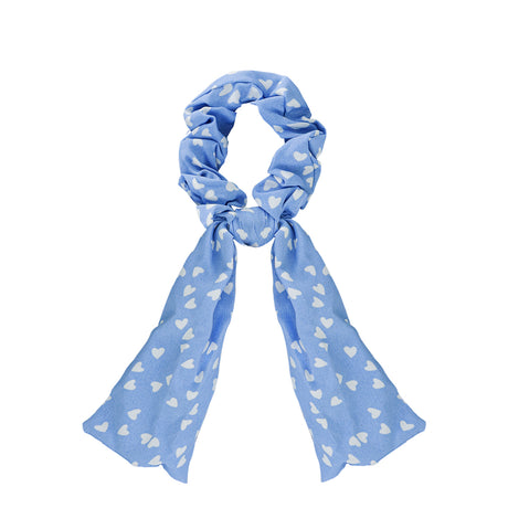 Scrunchie de Corazones, Color Azul con Blanco