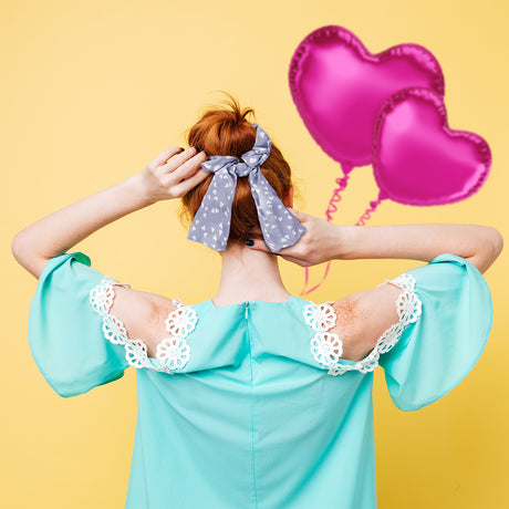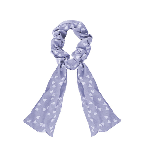 Scrunchie de Corazones, Color Lila con Blanco