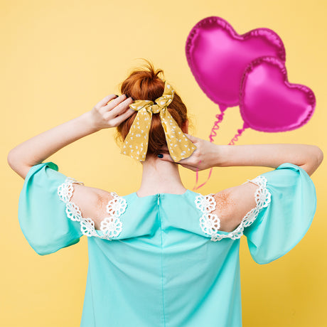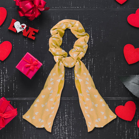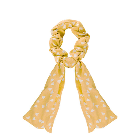 Scrunchie de Corazones, Color Mostaza con Blanco