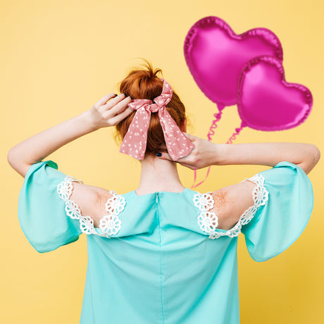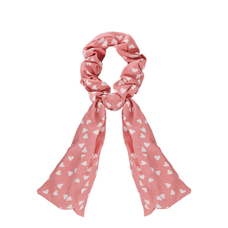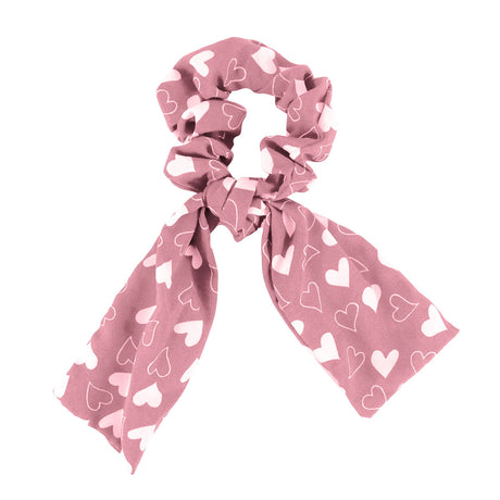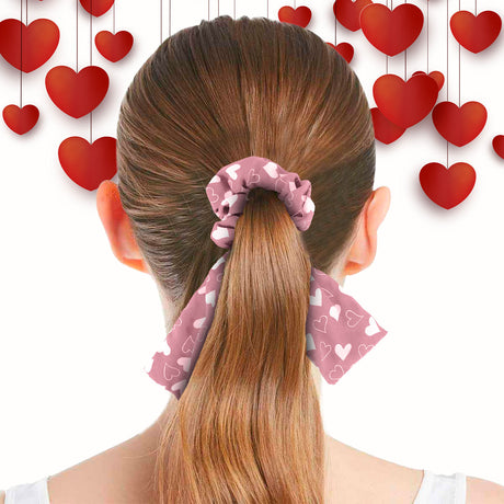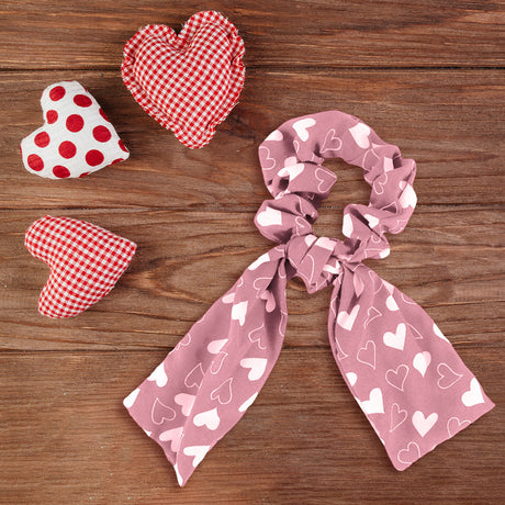 Scrunchie con Listón de Corazones, Color Rosa.
