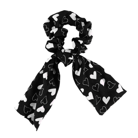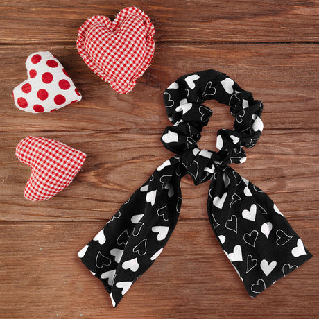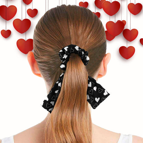 Scrunchie con Listón de Corazones, Color Negro.