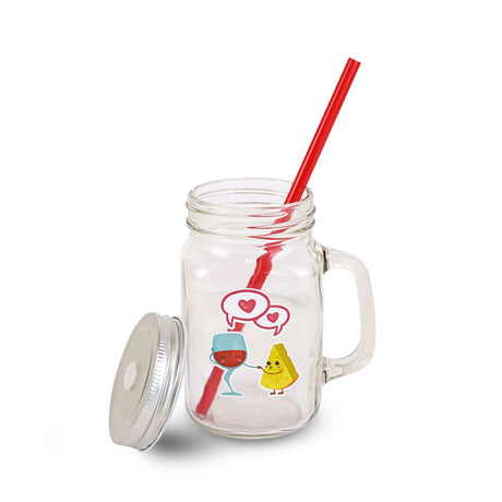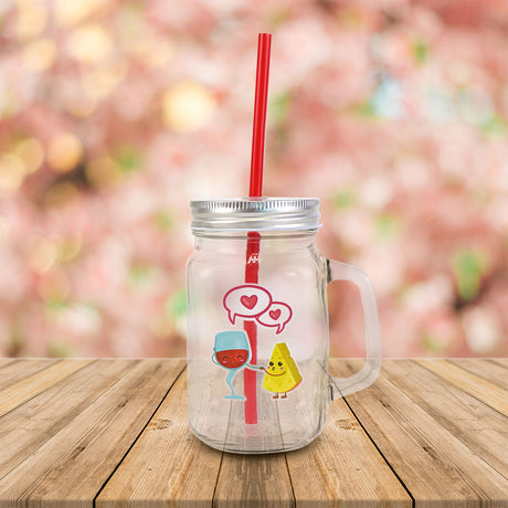Tarro de Vidrio Mason Jar Decorado de San Valentín con Tapa y Popote