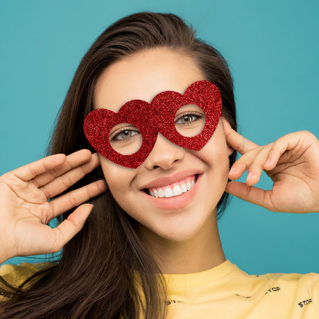 Lentes de Corazón con Diamantina Color Rojo