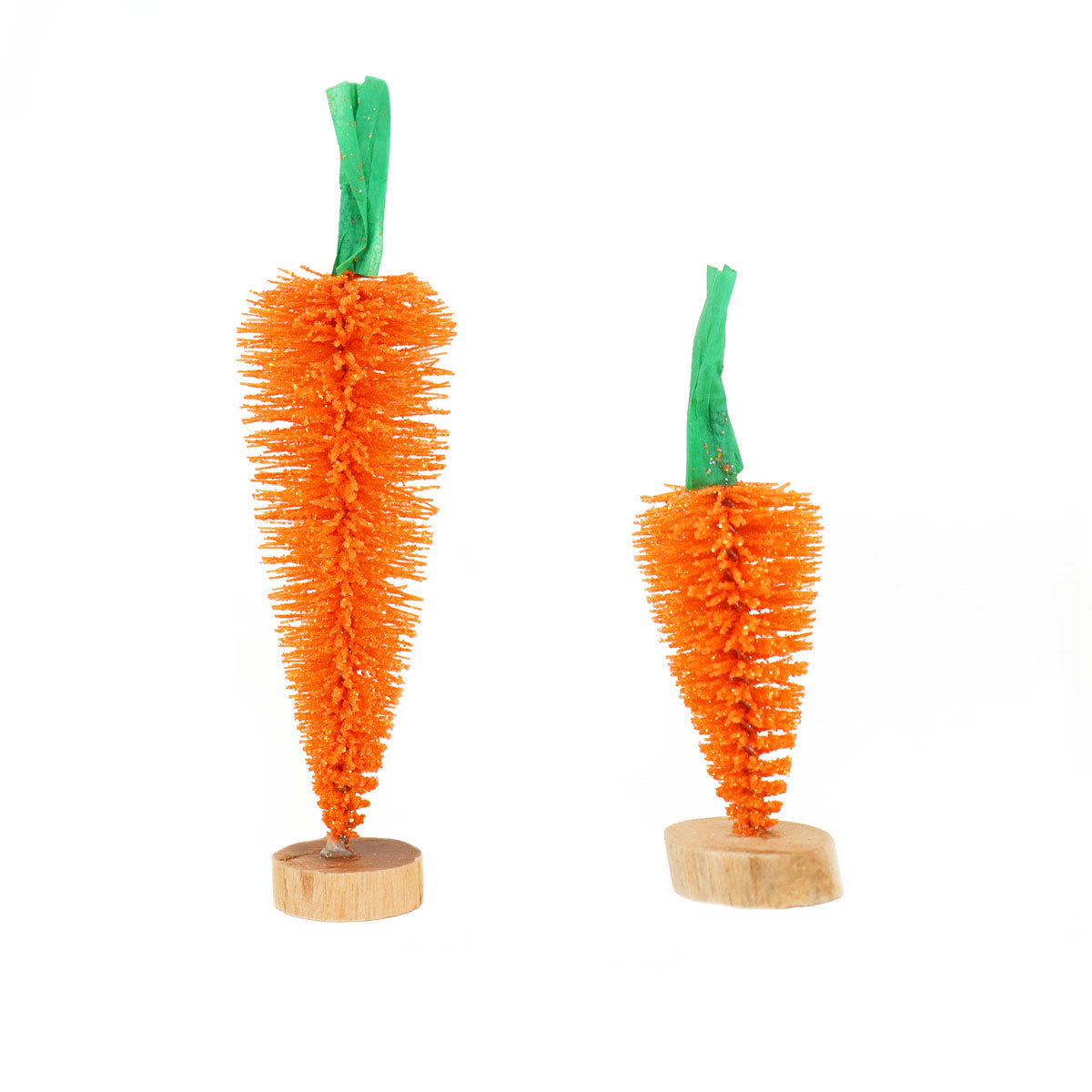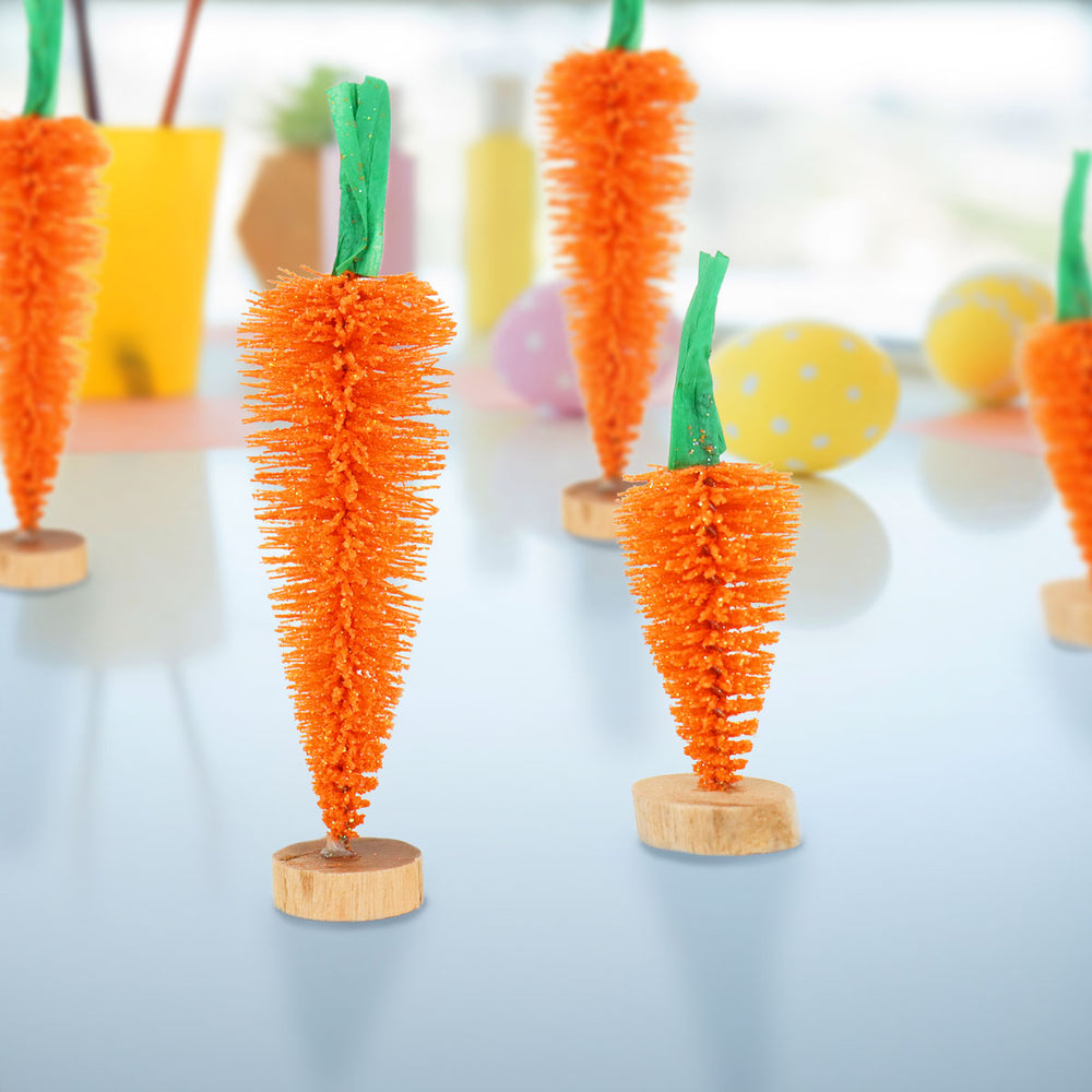 - Zanahorias de decoración: Coloca figuras de zanahorias hechas de madera, cerámica o tela en mesas, estanterías o centros de mesa.