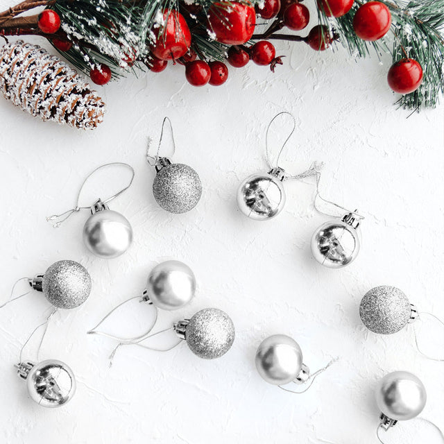 Kit de Esferas Navideñas, 12 pzas, Color Plata